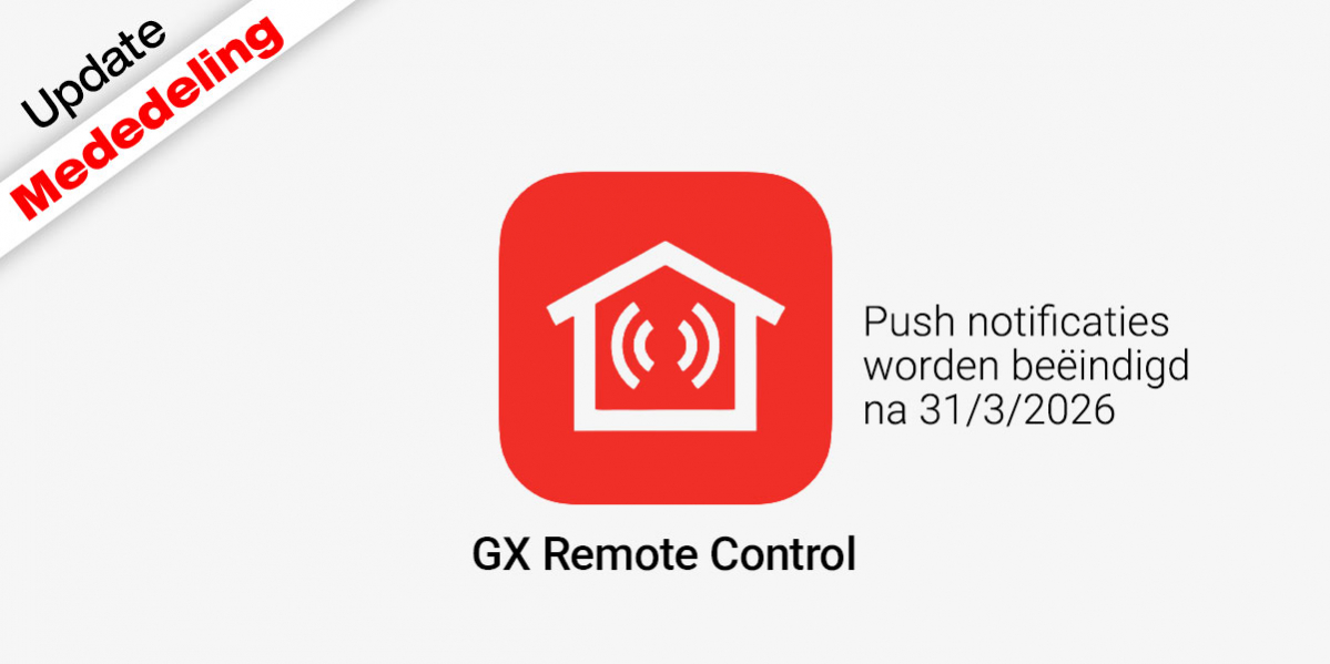 Wijzig uiterlijk op 31 december 2025 de instellingen van Galaxy-systemen die nu Push notificaties naar de GX Remote Control-app versturen, anders wordt er vanaf 1 januari 2026 een foutmelding op de bediendelen getoond en raakt de werking van de betreffende systemen verstoord. Instructies om dit te voorkomen vind je in dit CAN-document.